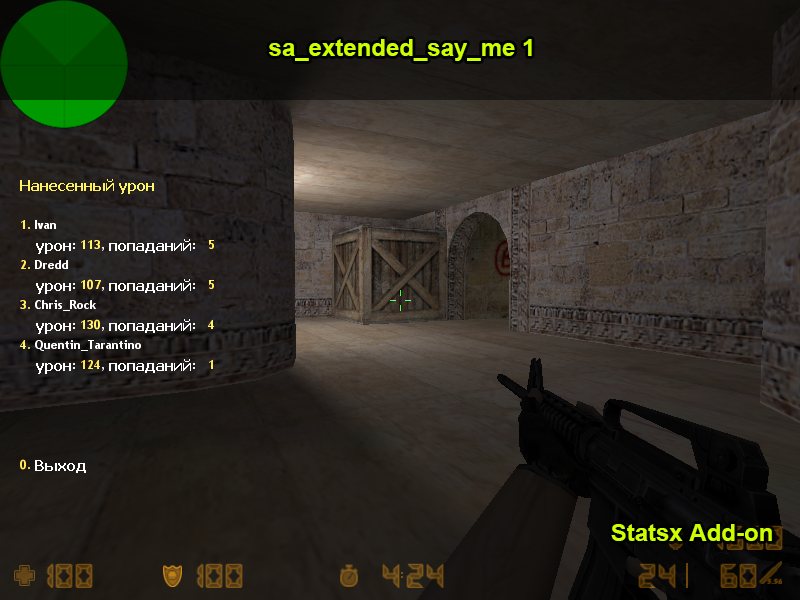 - возможность отображения в конце каждого раунда топа игроков по урону (квар sa_show_top_dmg_time)