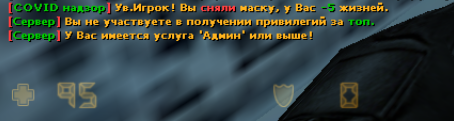 COVID_HEALTH_MSG_POST = ^3[^4COVID надзор^3] ^1Ув.Игрок! Вы ^3сняли ^1маску, у Вас ^4-%d ^1жизней.